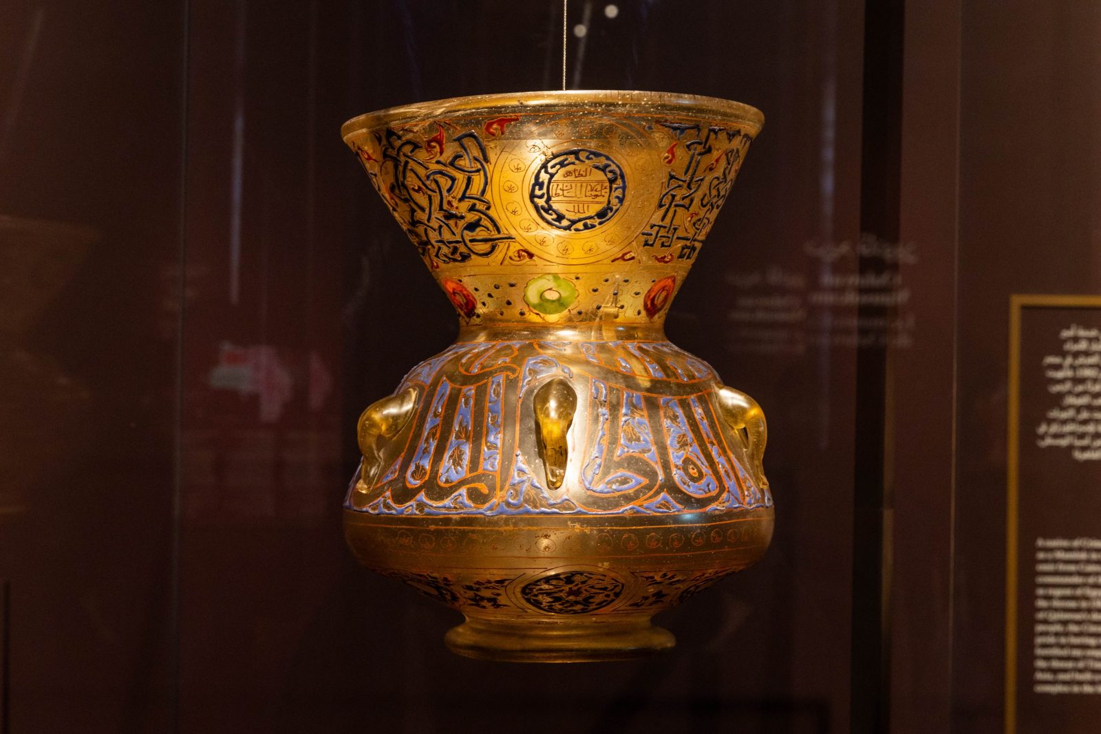 The fragments on display may be modest compared to monumental Qur’ans and luminous basins, but they carry the story of global exchange in every thread. Indian cottons printed with chevrons, crescents, and fish motifs were imported and copied in Cairo workshops. Blue-and-white cottons from Sultan al-Nasir Muhammad combined batik dyeing with Arabic inscriptions and double-headed eagles, even Chinese cloud patterns. Egyptian weavers pioneered the kabaty method, integrating decorative threads directly into the cloth, a technique admired as far away as China. And among the more curious borrowings was the waqwaq motif, a Japanese-inspired “talking tree” sprouting human and animal heads, proof that even eccentric ideas could travel and be refashioned in Cairo.