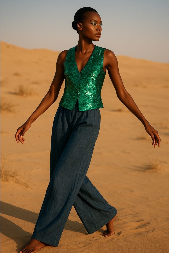 Further innovations include solar-cured indigo clothing, where the dyeing process is powered by the sun, minimizing energy consumption and reducing reliance on harmful chemicals. Even seemingly small details are being rethought – paillettes are now crafted from fish scales recovered from local markets, transforming waste into dazzling embellishments.