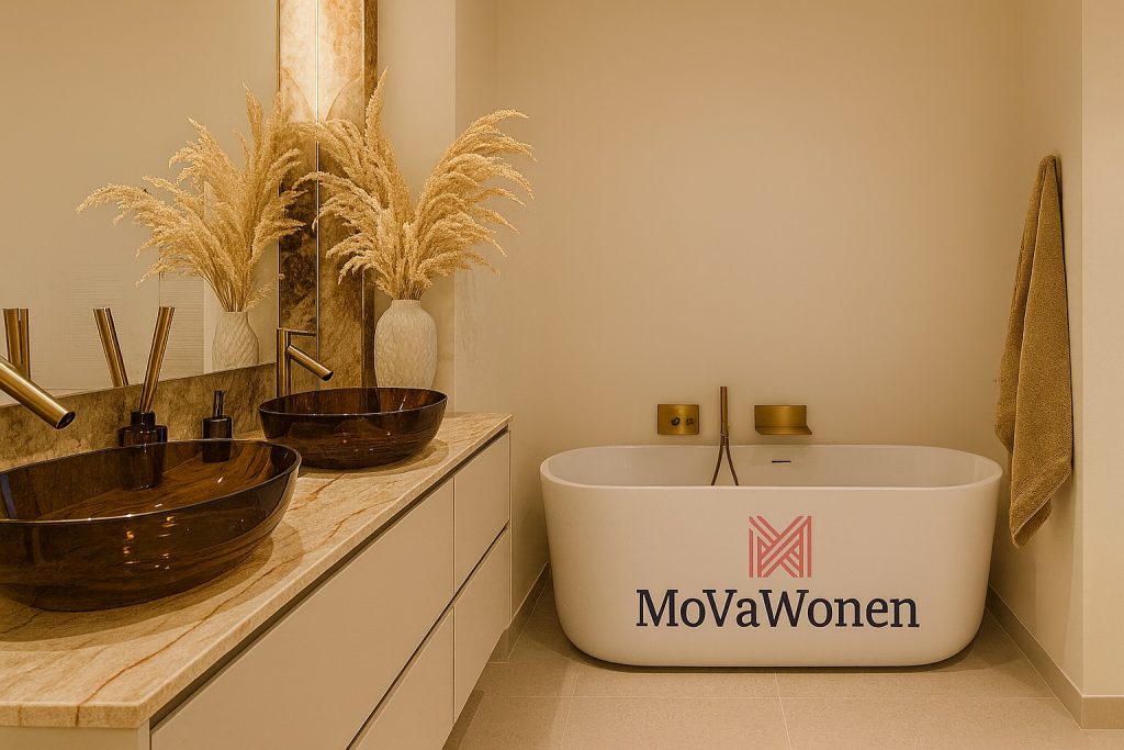 Warm light, quiet rhythm. The balance of texture and tone turns daily rituals into acts of grace ; Image Source : Mova Wonen NL