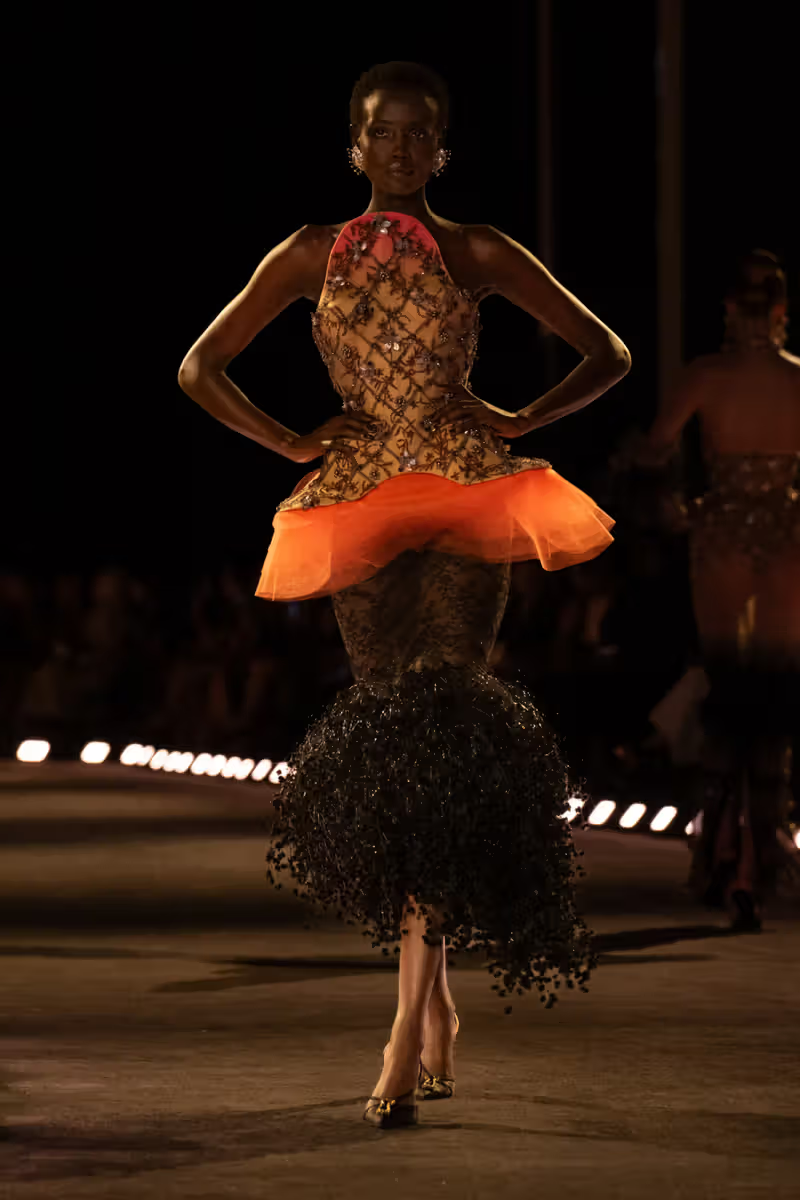 Zoomorphic motifs, scorpions, peacocks, blowfish, appeared striking but overly explicit, leaving limited space for symbolic transformation. While the sartorial execution remained extraordinary, the overall effect felt more confirmatory than surprising, raising questions about the house’s creative momentum and its ability to truly enchant again.