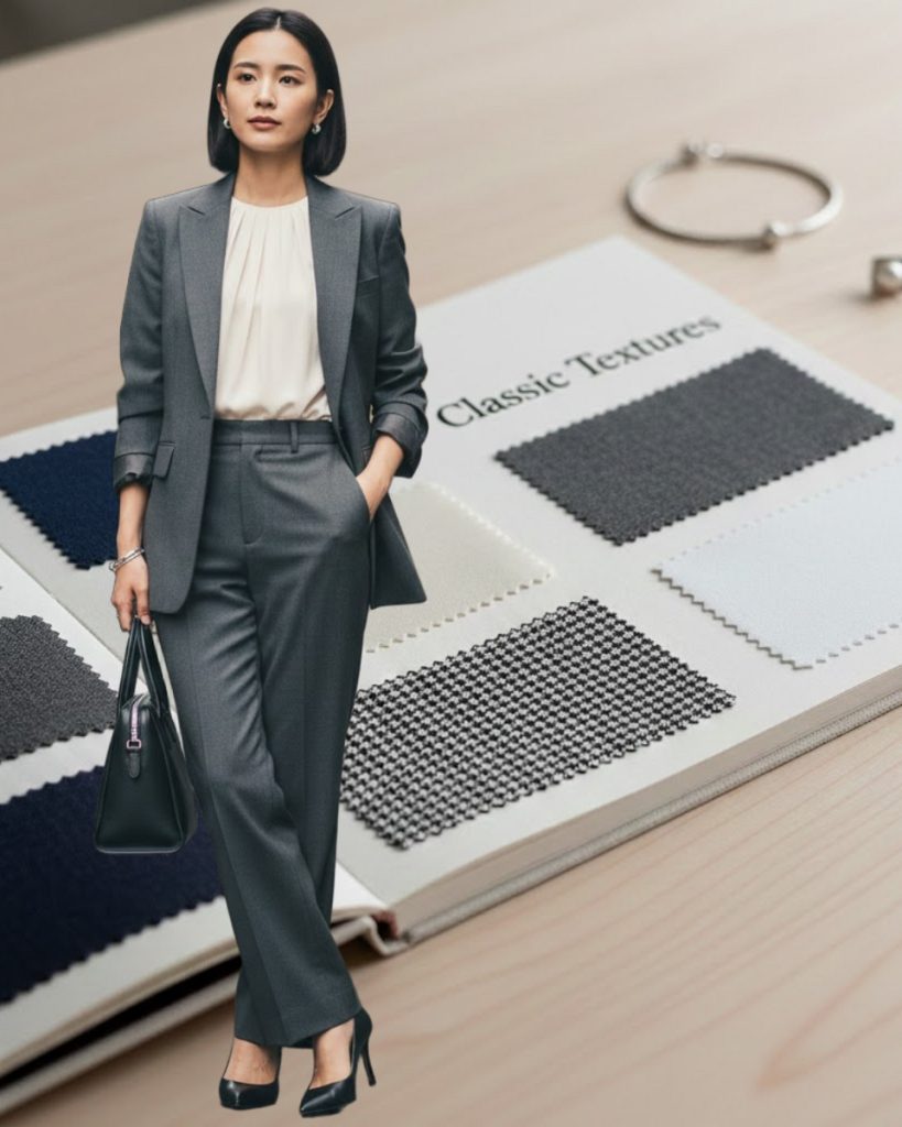 The Classic typology is an exercise in the “golden mean,” requiring fabrics that are neither too stiff nor too fluid. Balance is key. The hallmark of Classic material is exceptional quality and restraint, often expressed through smooth, matte finishes. Think of the world’s finest natural fibers: high-quality wool, lightweight cashmere, and silk jersey. The weave must be refined and even, avoiding irregularities that disrupt symmetry.