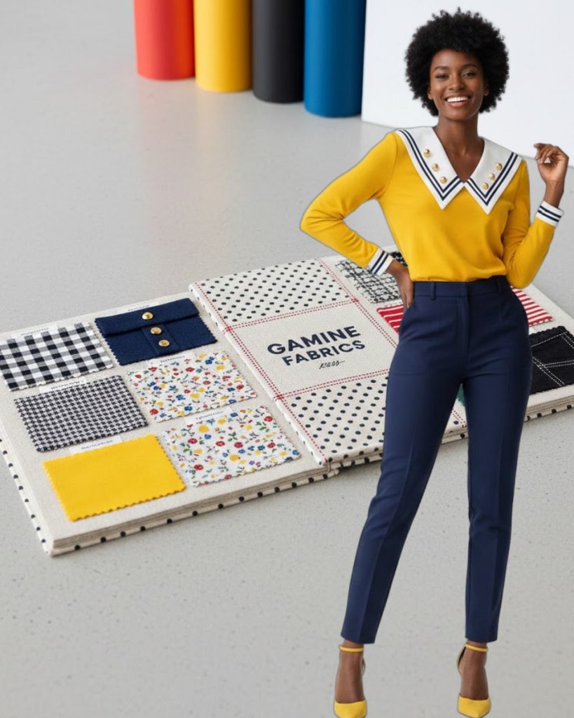 The Gamine thrives on contrast and high-impact patterns bold stripes, polka dots, or color blocking. Psychologically, this playful precision reflects wit and vitality. By choosing fabrics that hold shape in short, broken lines, the Gamine communicates an energetic persona that embraces contradiction and surprise.