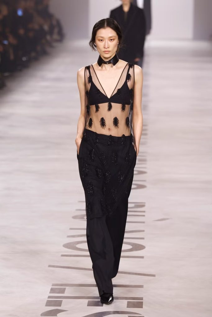Across the week, silhouettes tightened or elongated with intention. Shoulders were deliberate. Fabrics clung or enveloped with purpose. Surfaces were treated, sealed, aged, carved. Sensuality returned, but disciplined, framed by tailoring and filtered through proportion. Identity was not rewritten. It was reinforced.