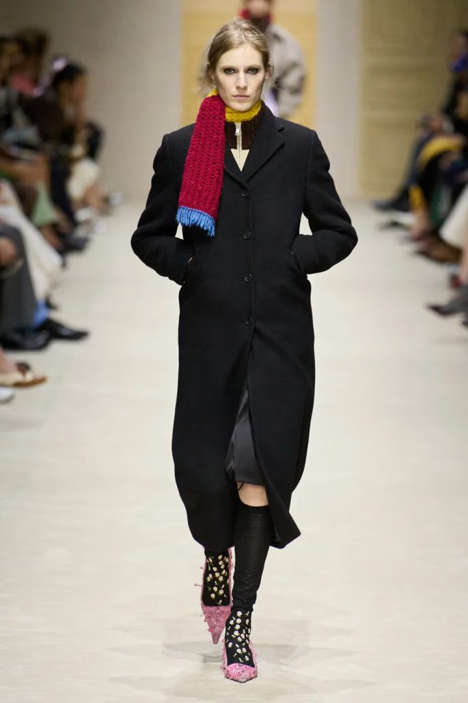 At Prada, depth functioned as strategy. Archival memory was embedded within minimalist silhouettes; fabrics appeared patinated, intentionally lived-in. Layers revealed other layers. Narrative density became competitive advantage in a saturated market.